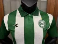 Listras verde e branco, gola polo e o escudo do clube com estrela no peito trazem estilo e identidade.